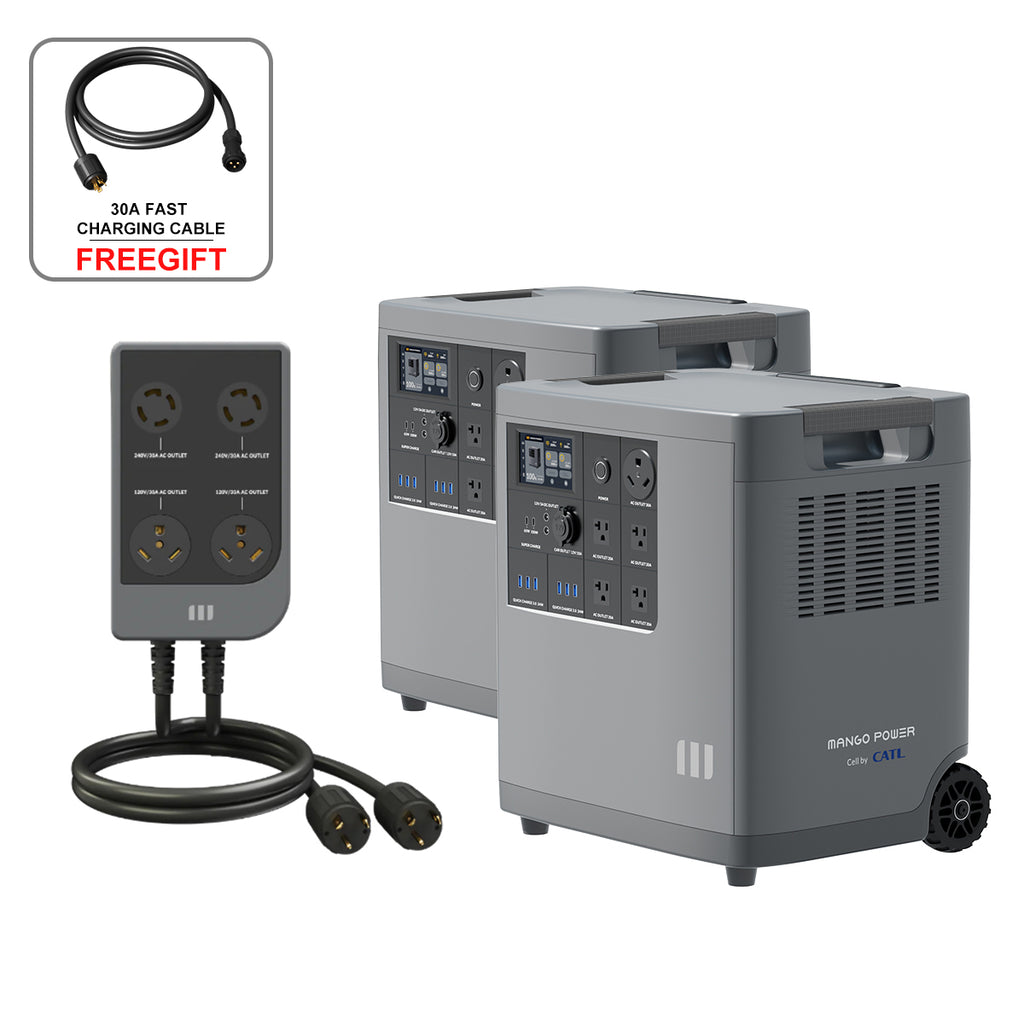 With the mSocket Pro* accessory, the Mango Power E becomes a high-powered split-phase generator capable of delivering 240V output so you can run large power-consuming appliances such as heaters, dryers, water pumps, and more.