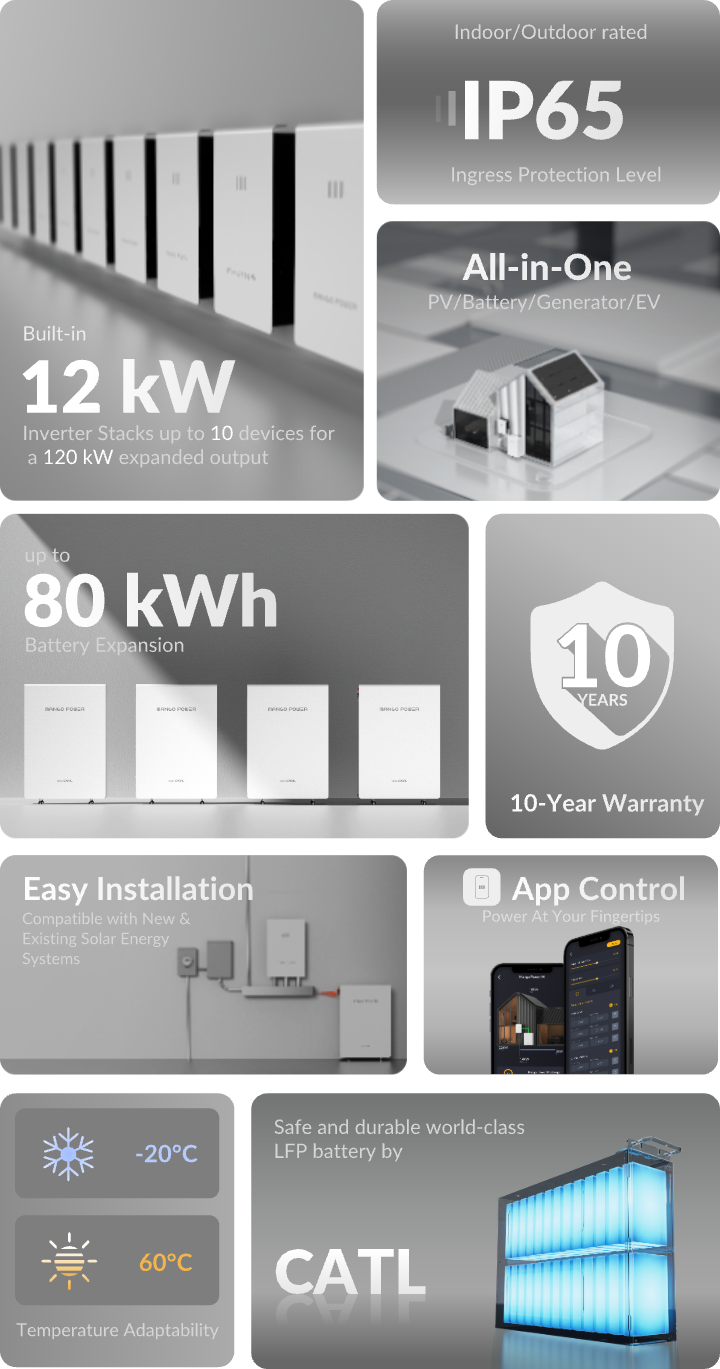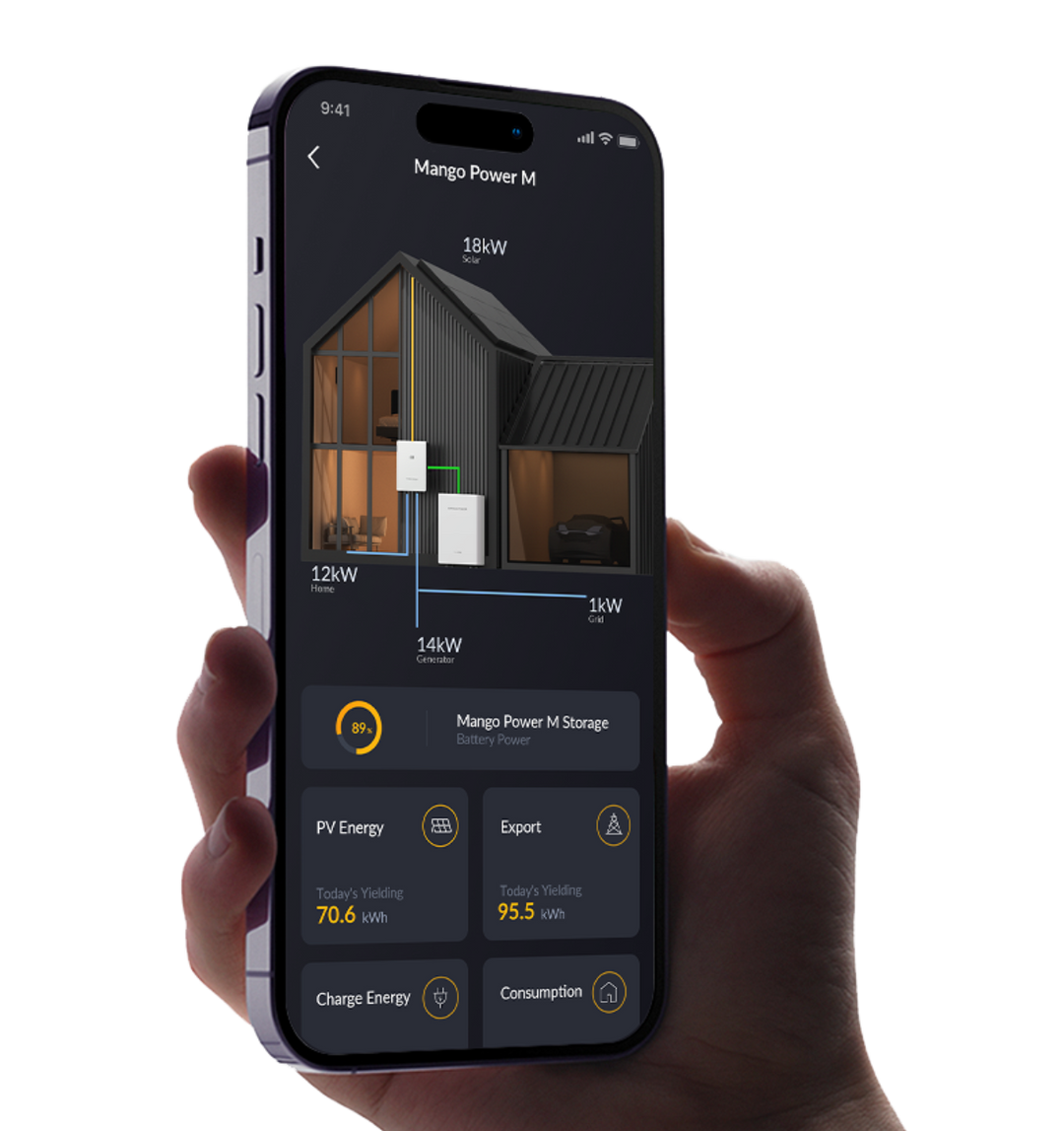 Mango Power M can provide whole-house power supply with a built-in 12 kW hybrid inverter. It can stack up to three 120 kW inverters and the battery capacity is